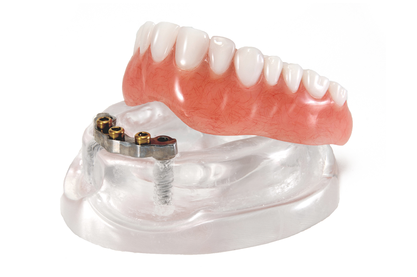 Con el apoyo de tan solo dos implantes, esta prótesis ofrece una superficie de masticación estabilizada y un riesgo mínimo de desalojo debido a su barra de titanio fresada y aditamentos paralelos a la tabla oclusal. ¡La mayoría de los pacientes obtienen hasta el 90% de su función con esta línea! Esta es una excelente opción para corregir implantes no paralelos y compensa la diferencia significativa del implante.